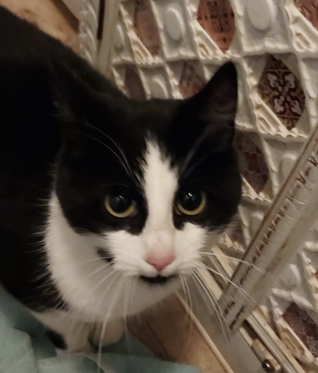 E-mail: beverwijk@amivedi.comkleur ogen groen geel, zwarte op kopje tot onder beide ogen, witte kin, wangen en neus (tot aan voorhoofd) Grote zwarte vlek op kin, meer rechts, bef en gehele borst wit, wit van bef loopt door in een halsring die bijna sluitend is op rug Onderkant lijf wit, boven vooral zwart VOORPOTEN Rechts witte sok, links witte laars, beide met zwart op achterzijde ACHTERPOTEN Beide poten witte laarsjes met zwart TEKENING STAART zwart met witte punt