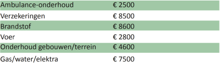 Hieronder vindt u wat voorbeelden van de jaarlijkse kosten die wij maken: